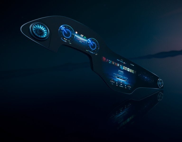 The Hyperscreen is a thing of beauty. On the surface, it’s an expanse of curved glass, but it’s more elegant than any curved computer monitor. The glass is heated to 650 degrees Celsius during the molding process, says Mercedes, and the curvature ensures distortion-free viewing from anywhere in the vehicle.