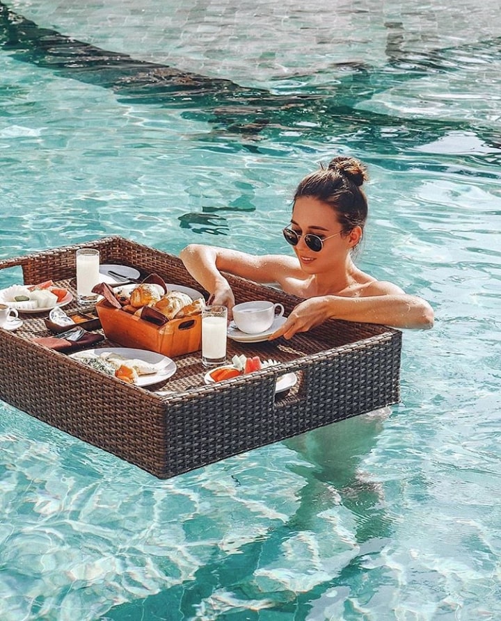 Most hotels with pools will organize this for you. It costs about $30 for a basket at hotel Tanadewa. Just make sure to arrange in advance. How comfortable and practical is a floating breakfast? Not very practical but it’s a lot of fun. Definitely a once-in-a-lifetime experience. You’re in Bali, why not? The food is also completely edible (and tastes amazing).