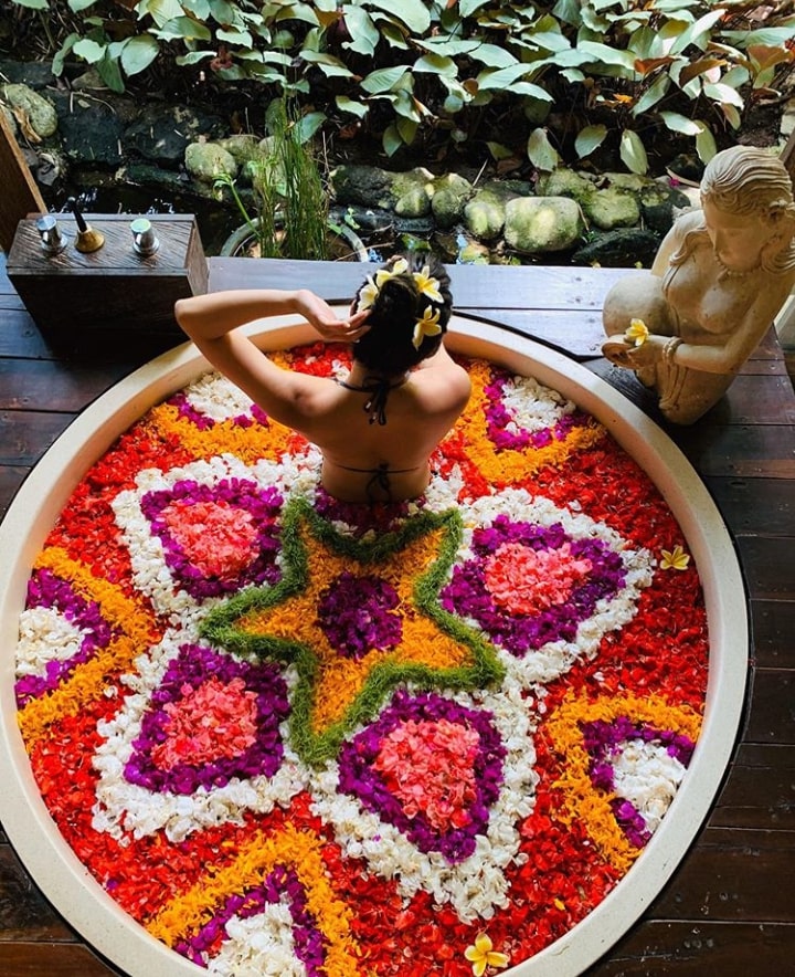 You’ll want to end your day with this unique spa treatment. Lots of places offer for $30 but we recommend Udaya Resorts and Spa. It is a luxury spa and one of the best in Ubud. Ask for the celebration of flowers treatment.