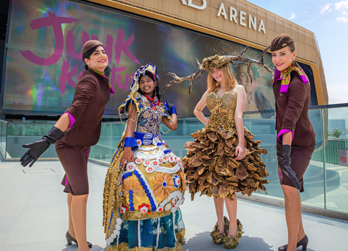 The World Final of Junk Kouture 2022 will hold at Etihad Arena on the 11th of January, 2023. UAE students Vatsala Jain from JSS Private School, Dubai (left) and Olivia Reed from Abu Dhabi International School, Abu Dhabi (right) pictured with…
